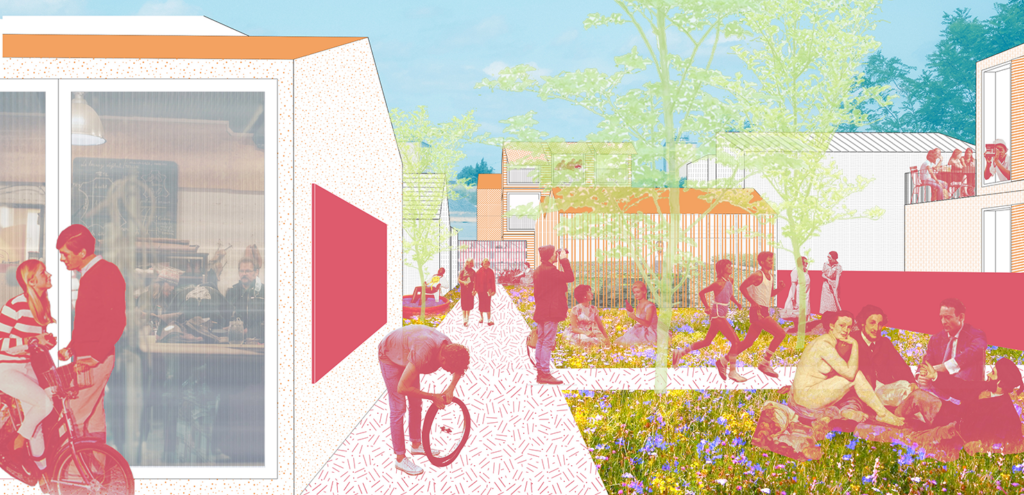 Notre proposition mise sur une urbanisation douce : réemploi des matériaux issus des chantiers voisins, requalification légère de l’existant, désimperméabilisation ciblée, et mise en culture de certaines parcelles libres. L’objectif est simple : améliorer le confort de vie, renforcer les continuités écologiques et limiter l’impact carbone, tout en préservant l’identité historique du quartier.