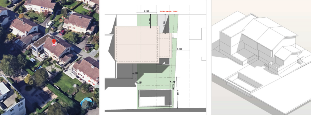 Dans le cadre de l’étude d’extension d’une maison individuelle située à Zoug, SCAN Architecture a développé trois variantes d’esquisse permettant d’exploiter pleinement le potentiel constructible de la parcelle, tout en respectant les contraintes budgétaires et réglementaires du projet.